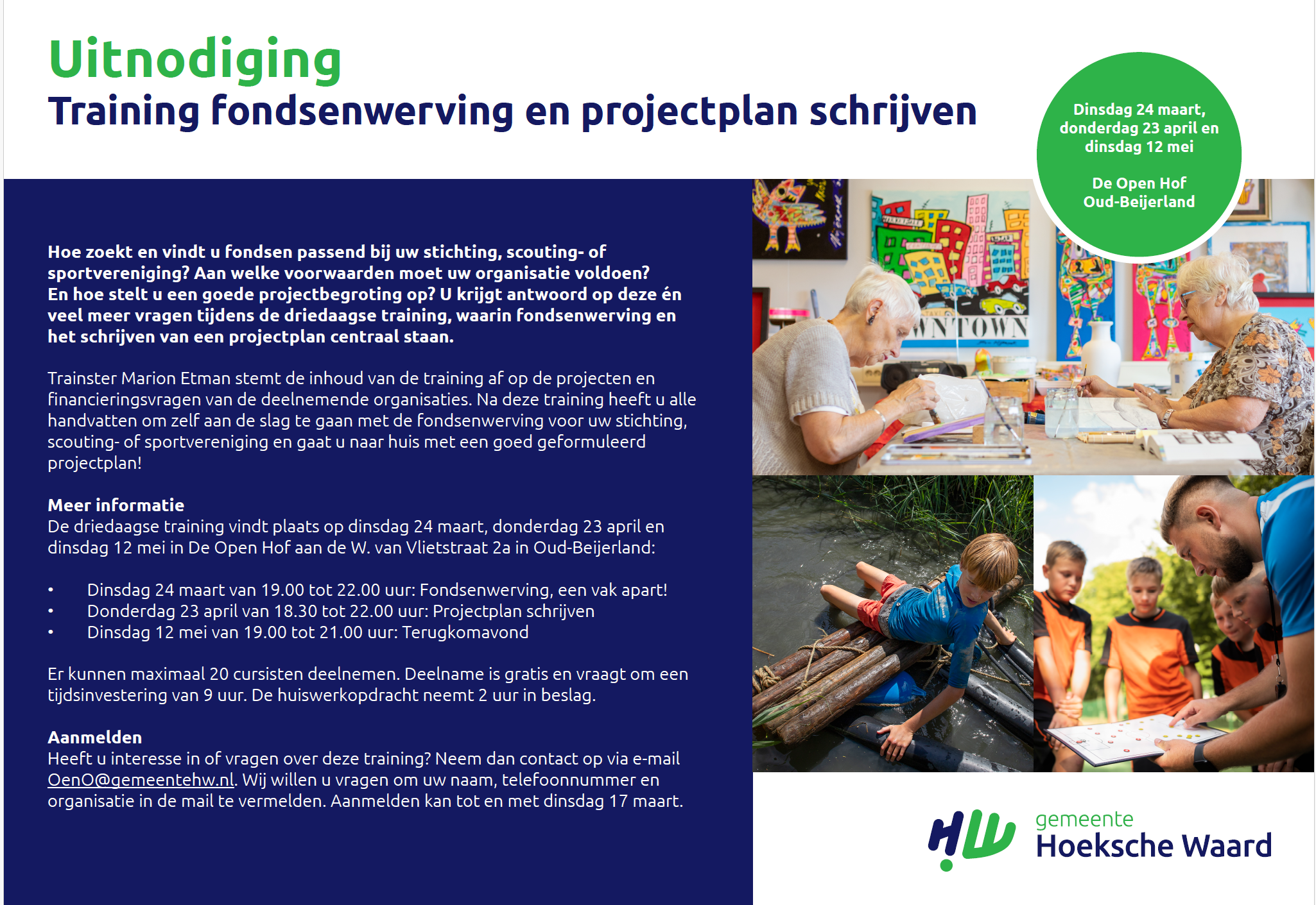 Uitnodiging Training fondsenwerving en projectplan schrijven